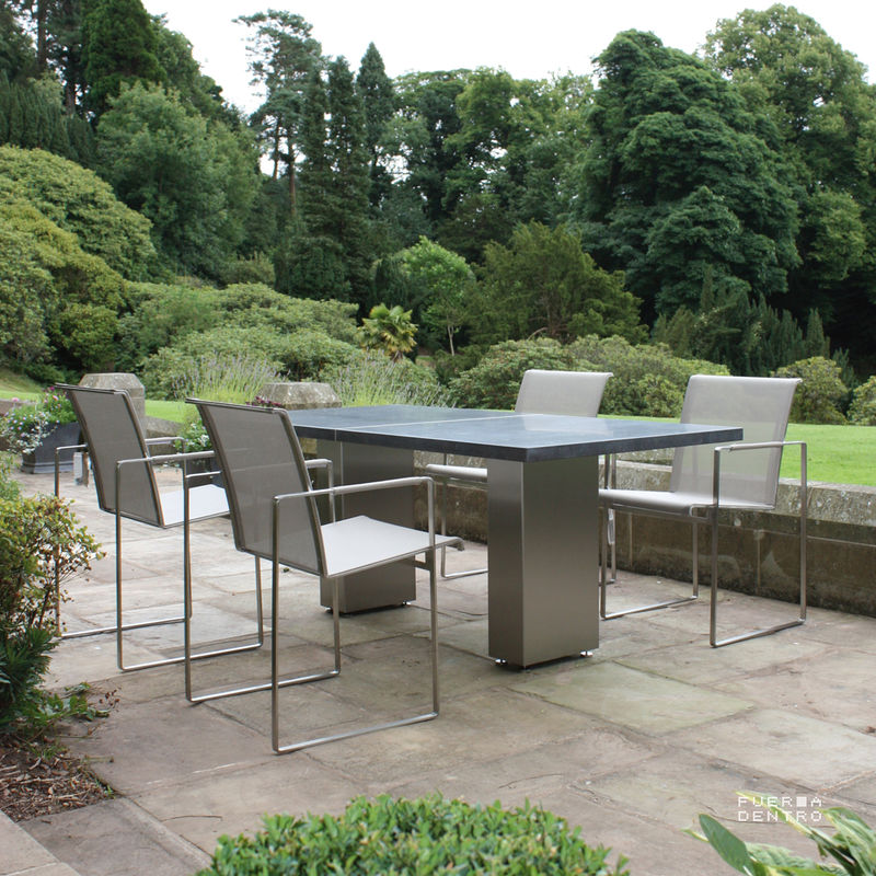 イス、フットレスト、サンラウンジャーの座席素材はbatyline®製で、テーブルトップはガラス、チーク材、ベルギーブルーストーンでカスタマイズすることができます。ファニチャーの最終的な配置場所に応じて、ステンレス電解研磨を実施し、耐食加工を施すオプションもあります。CIMAコレクションのすべての要素が美しいミニマリストラインを保っており、視覚的に魅力的なだけでなく究極の快適性も実現しています。